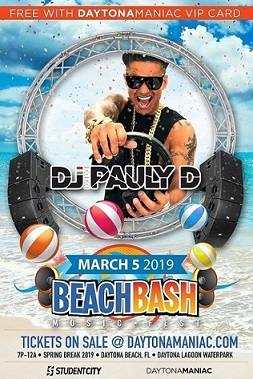 Reality TV icon and live music sensation, DJ Pauly D, has officially confirmed that he will perform live during Spring Break 2019 in Daytona Beach and in Panama City Beach.